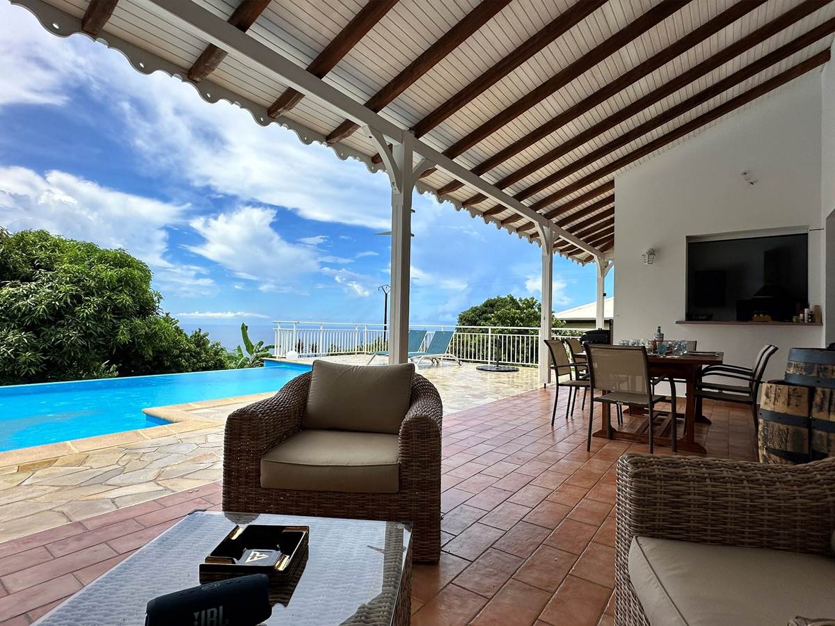 Savourez le charme de la Martinique dans cette villa créole, spacieuse, avec piscine à débordement, vue panoramique sur la mer des Caraïbes et grande terrasse couverte. Trois chambres, deux salles de bains, cuisine équipée et salon design. Calme, confort et farniente assurés !