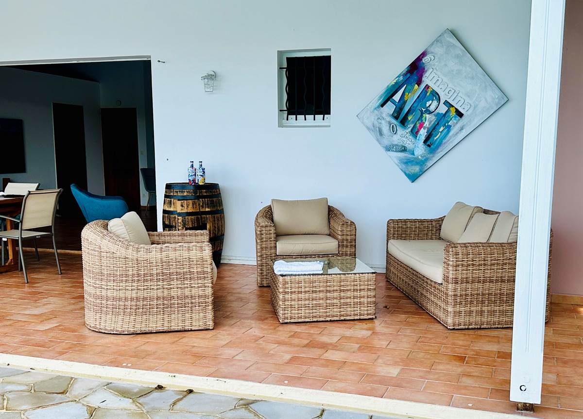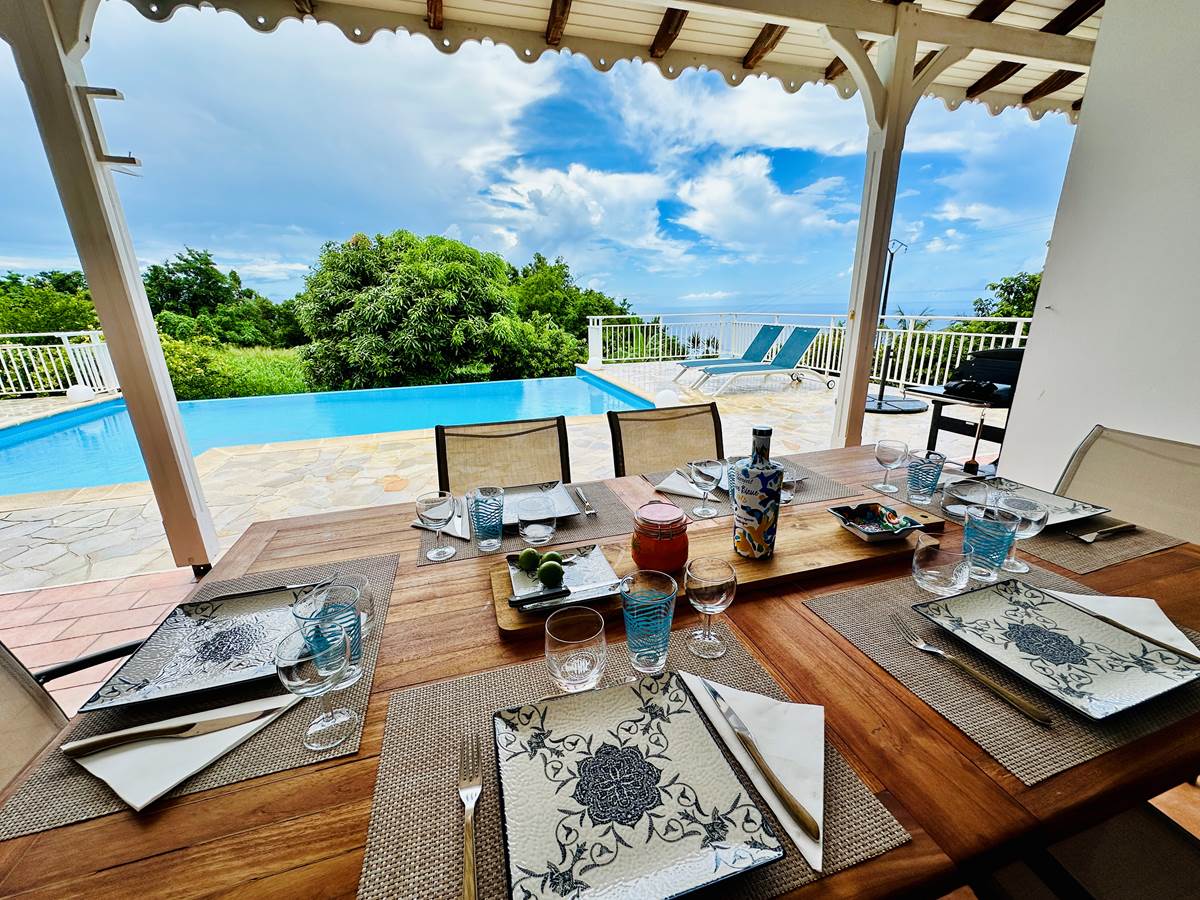 Depuis la terrasse ombragée, laissez-vous envoûter par la vue sur la mer et le coucher du soleil sur les Caraïbes.